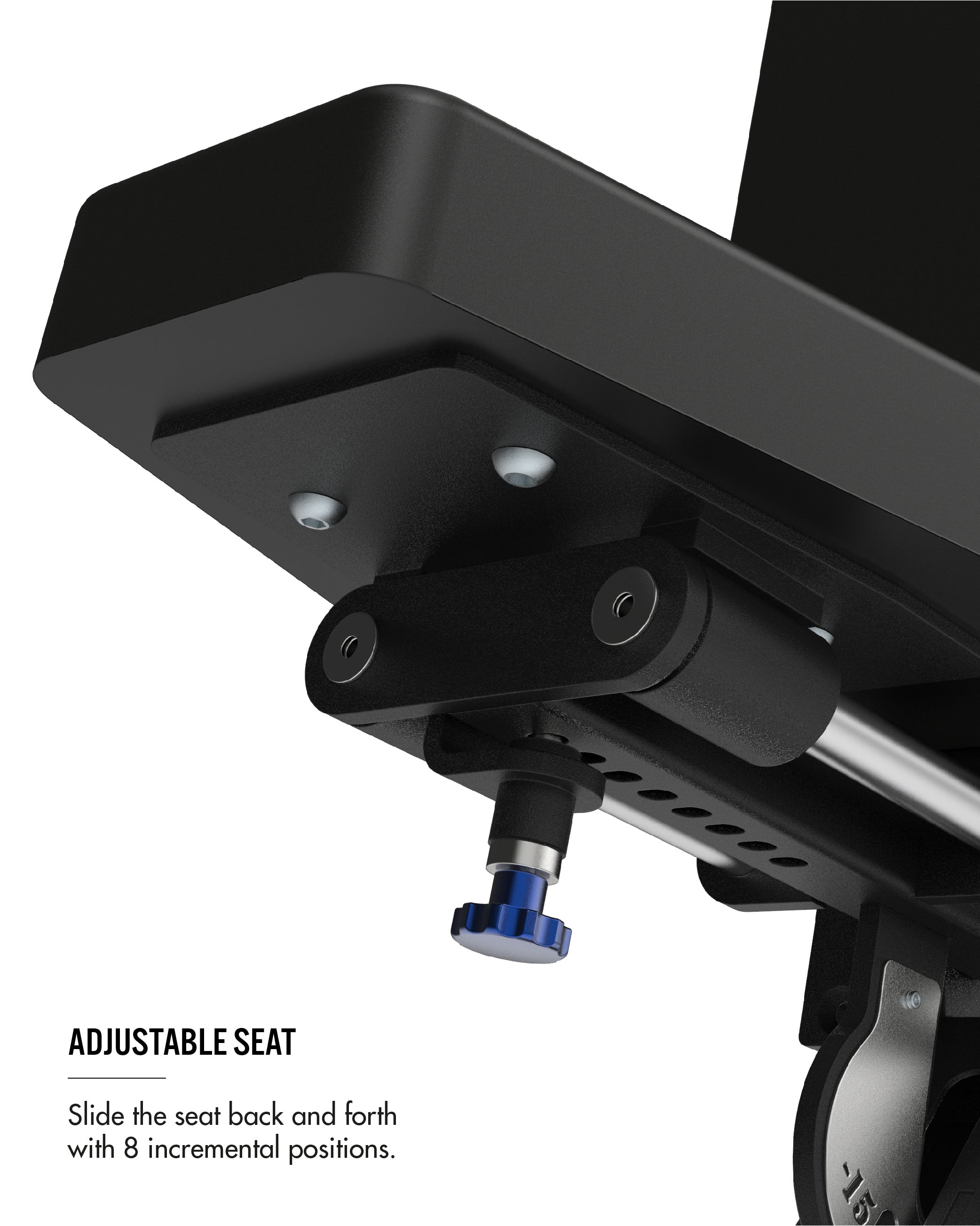 • 5 seat pad adjustment positions:  -15 / 0 / 15 / 30 / 45 degrees