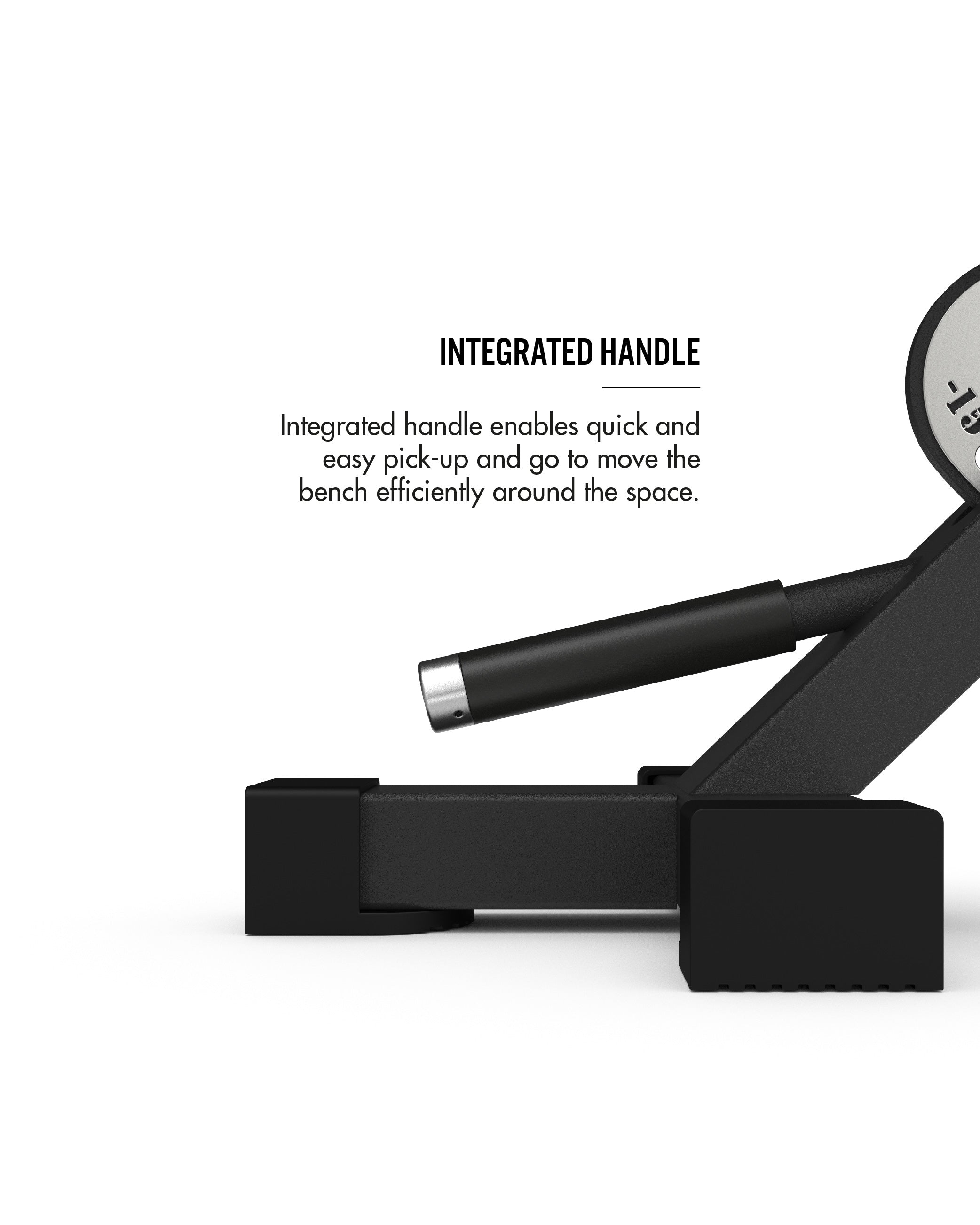 Use as a flat bench or incline bench. It features a linear bearing and pull-pin adjustment mechanism, eliminating any gap between the seat pad and back pads in all positions. In addition, it has 7 angular adjustments to offer on the back pad and 5 on the seat pad.