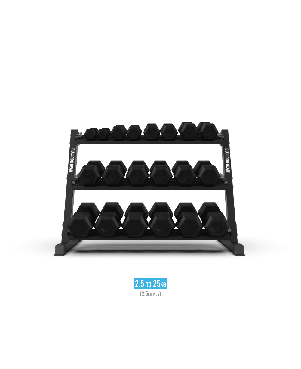 - 275kg - 2.5kg to 25kg Set of our Hex Dumbbell 1.0's + Rack.