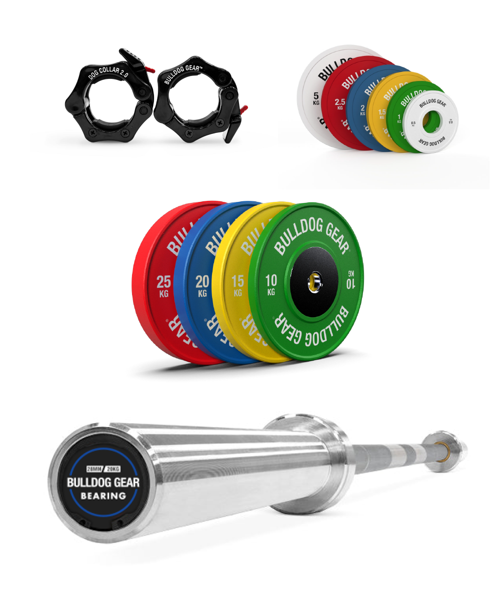 Bulldog Gear - Mens 20kg Barbell & Bumper Plate - Olympic Weightlifting Bundle