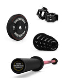 This complete barbell and bumper setup is ideal for lifters seeking commercial-grade quality with space efficiency and long-term durability. Built around a Cerakote-finished Olympic bar and dense, low-bounce rubber plates, the bundle also includes calibrated fractional change plates and secure locking collars for total progression control.