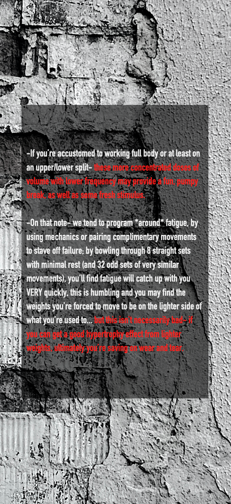 This is an unabashed, old school bodybuilding programme with some new school tweaks for added functionality and a hint of spice.
