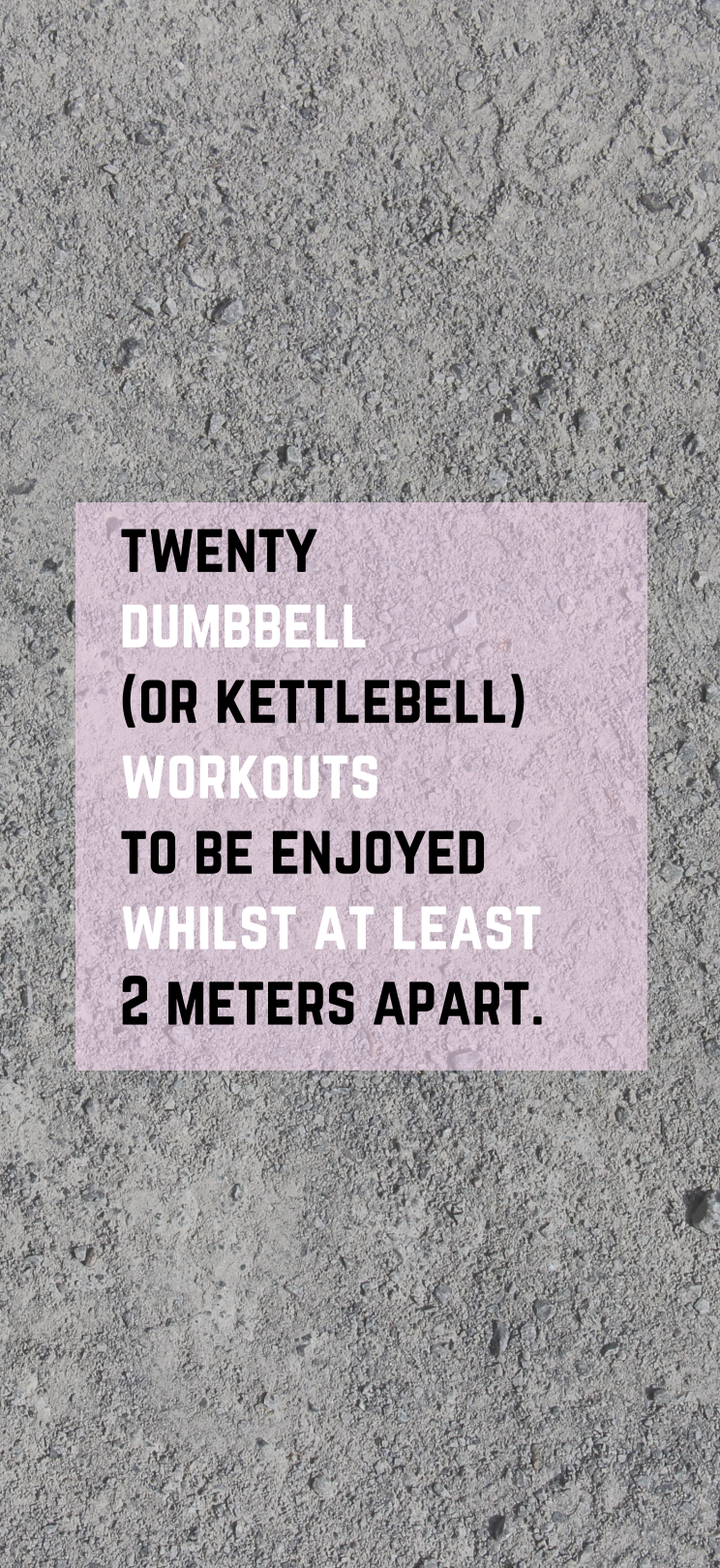 Twenty single dumbbells (or kettlebell) workouts to be enjoyed whilst at least 2 meters apart.