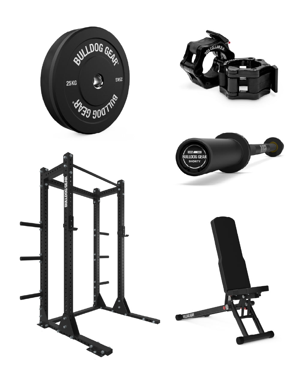 This free-standing, space-efficient bundle includes everything you need to train strength and conditioning at a professional level. Built around the robust MLHR Half Rack, with paired barbell, bench, bumper plates and collars, it’s a complete setup ready to support squats, presses, pulls, and accessory work — all within a minimal footprint.
