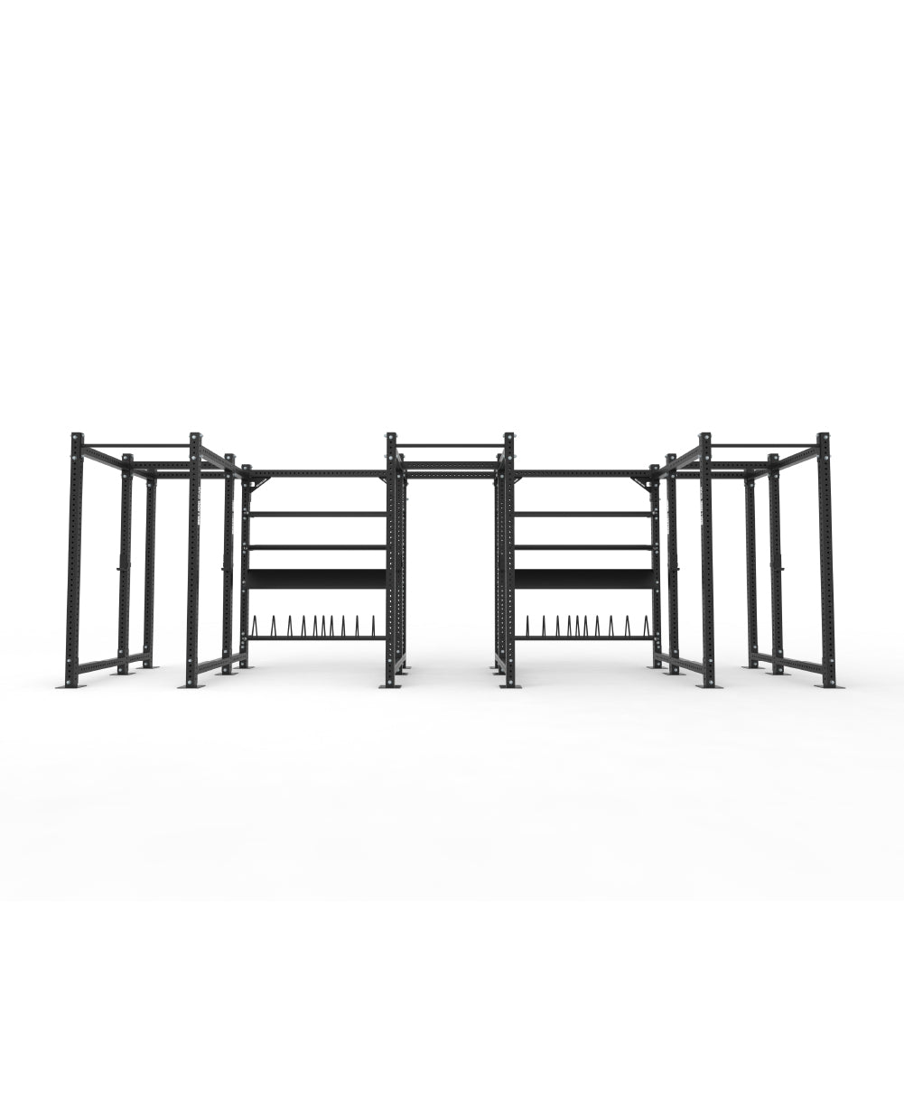 Our Bulldog Gear two Bay PT Pod allows one coach to easily and safely train multiple clients simultaneously within a limited space. With three full Squat Racks available and fully integrated gym storage you can maximise floor space and have all your kit conveniently and safely stored away.