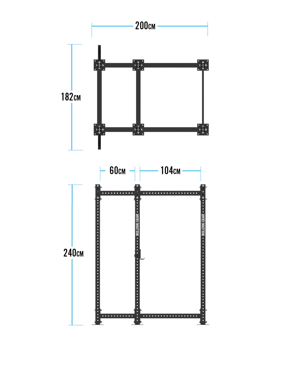 - Uprights: 2.4m tall, 80 x 80 Box Section 3mm Wall