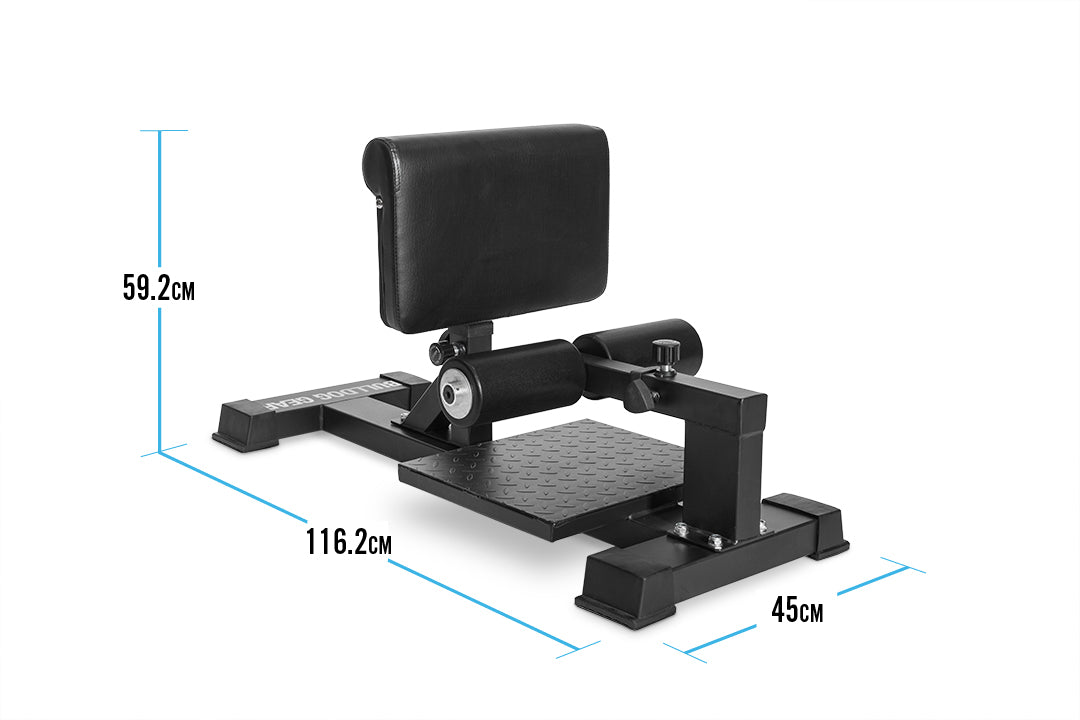 The Bulldog Gear Sissy Squat Bench is designed to comfortably support the shin and lower leg in a vertical position to perform free standing squats. Sissy squats are great for strengthening the quadriceps, working hip flexors, developing core strength and improving balance. The seat pad height and shin pad are fully padded and adjustable, allowing you to find the optimal position, regardless of athlete height and build. With the bulk of the bench's weight sitting in its base, you can be sure it won’t tip or lean, giving a rock solid foundation so you can concentrate on your workout.