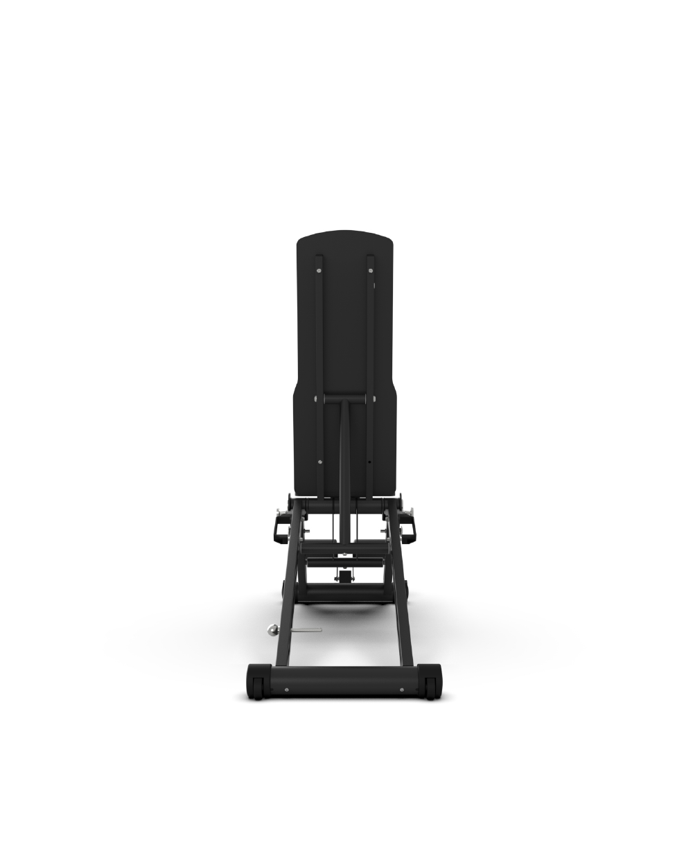 The Zero Bench functions as a flat, incline and decline bench, allowing for a broad range of exercises within a compact footprint.