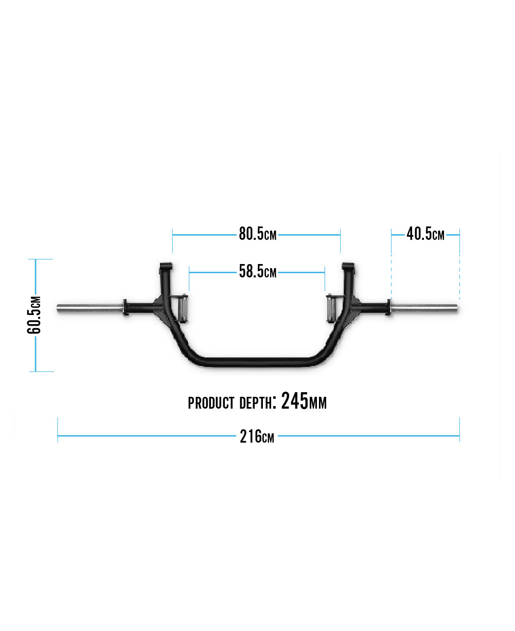It also has 30mm and 50mm diameter knurled handles that are 135mm long. The knurling provides additional grip and the 50mm diameter handles allows an athlete to develop their forearm strength and muscle recruitment. They can also super-set on reps using the 50mm diameter grips and then dropping down to the 30mm grips once the forearms are fatigued, allowing for increased volume in a training session.