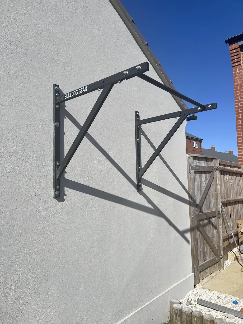 Our Wall mounted pull up bars are first Zinc Plated before our signature matte black powder coat is applied to give optimum protection and durability, providing longevity against the elements.